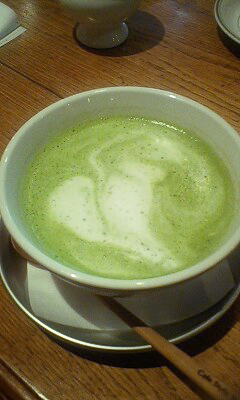 抹茶オーレ。あったかくて甘いのが疲れた体に染みます。